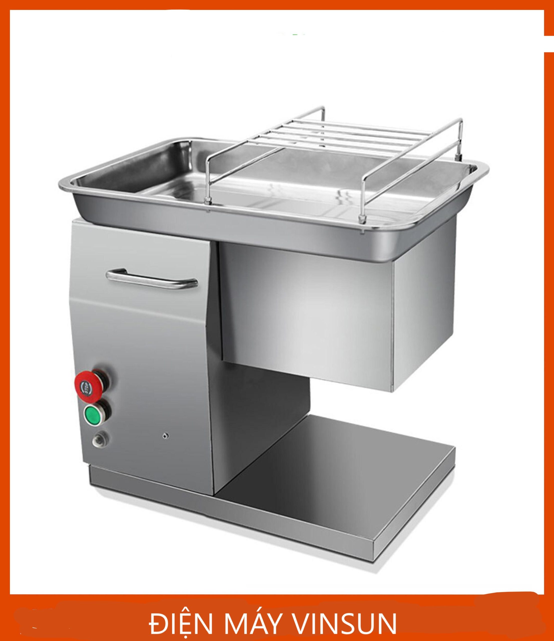 – Lưỡi dao được cấu tạo có các vết khía giúp cho máy bám thịt tốt hơn, nó tự động kéo thịt xuống máy để thái thịt.