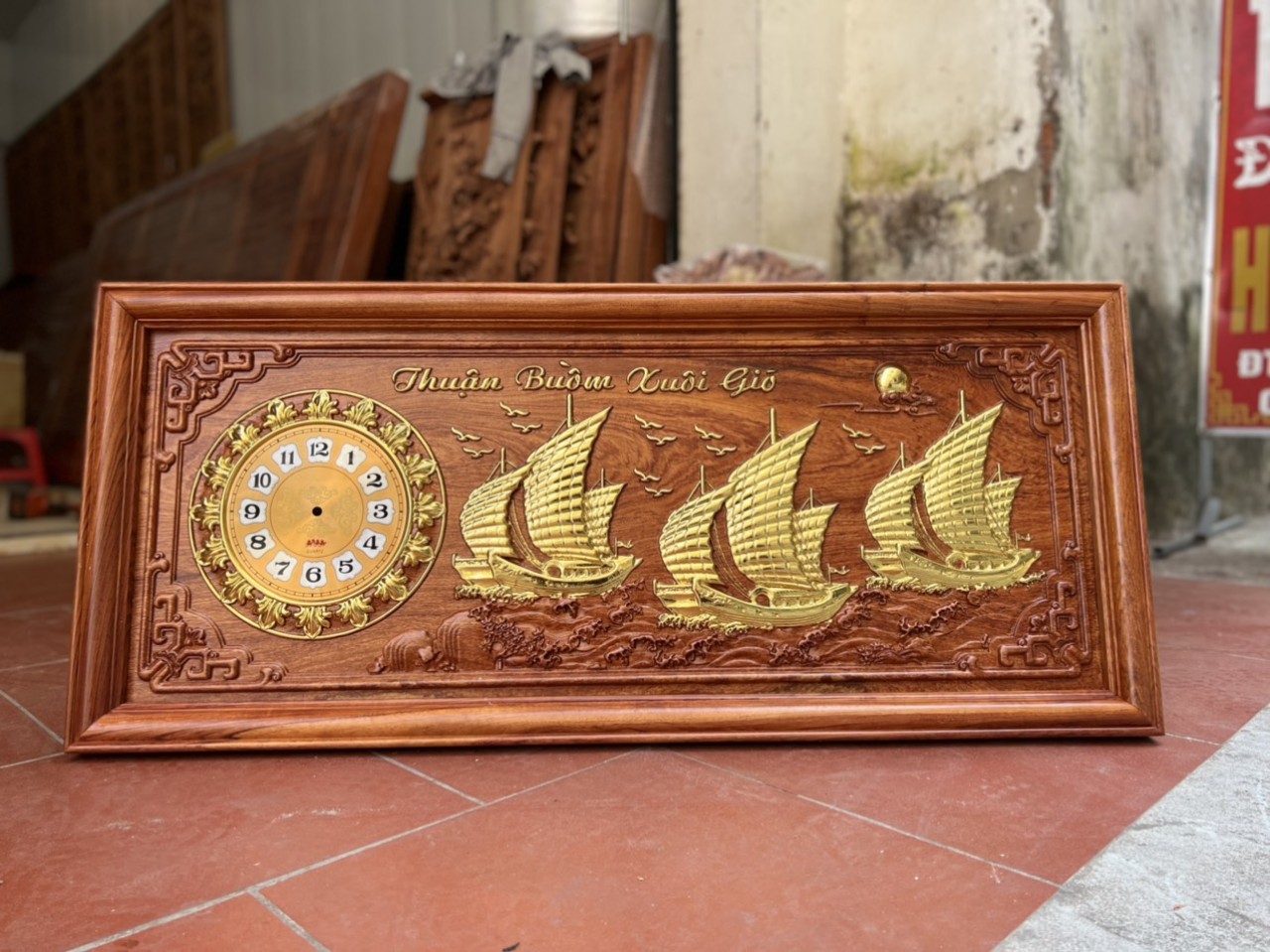 mênh mang trên bờ biển. Sau đợt bán hàng, đoàn thuyền lại chở nhiều tài lộc, chở hàng, chở lãi về nhà. Vì thế tranh điêu khắc thuận buồm xuôi gió như là 1 lời chúc may mắn, cuộc sống sung túc, thuận lợi.