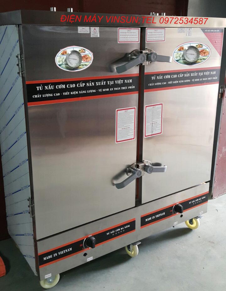 Tủ Cơm Gas 24 Khay Việt Nam cung cấp bởi Cty Ứng dụng công nghệ Việt Nam chín cơm bằng hơi nước, được trang bị hệ thống bảo vệ nhiều lớp để cách nhiệt và giữ nhiệt. Tủ cơm công nghiệp này bền đẹp, sang trọng các thiết bị cả trong và ngoài tủ. Điện máy VinSun đi đầu về công nghệ sản xuất tủ cơm gas, đến nay tủ được trang bị Còi báo chống cạn nước, đồng hồ báo nhiệt và thanh magie chống bám bẩn khoang nước. Đặc biệt, Tủ nấu cơm tiết kiệm đến 60% gas. Sau khi nấu, cơm ngon từng hạt nên tủ cơm được các Khánh sạn, Nhà hàng, bệnh viện… cả nước tin dùng.