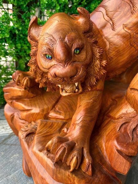 “Mãnh Hổ Rình Mồi” là một tác phẩm nghệ thuật độc bản do ViNu Mộc chế tác, mang trọn vẹn thần thái uy lực của chúa sơn lâm giữa đại ngàn. Tượng được tạc thủ công từ gỗ hương tự nhiên nguyên khối, có sắc đỏ nâu sang trọng, vân gỗ cuộn xoắn mềm mại và hương thơm dịu nhẹ đặc trưng.
